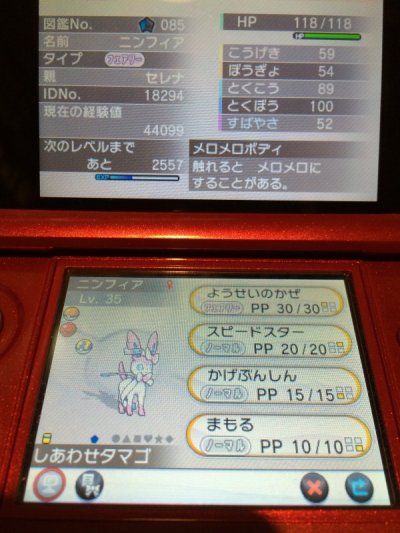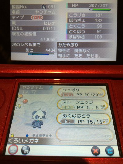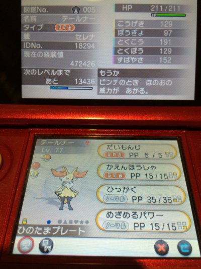 特に自分の場合、Yの方で色違いゼルネアスを持っているので、セレナプレイをしているXでは本格的にいらない存在なのですが。